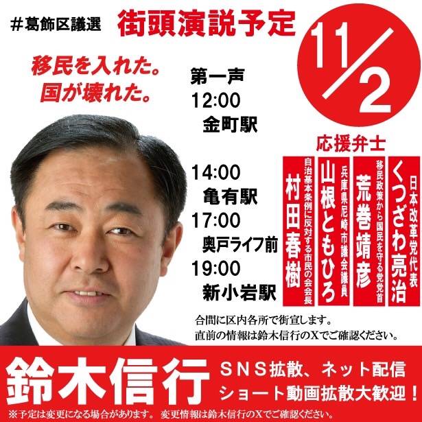 - 移民 VS 日本 鈴木信行出馬!決戦が始まる葛飾区議選(11月2日〜11月8日)
